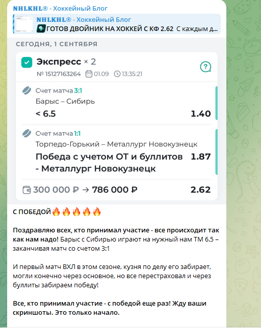 В фокусе — бигмаркеты: победы в основное время и в матче, тоталы больше/меньше, а также гандикапы. Эта стратегия делает 𝐍𝐇𝐋𝐊𝐇𝐋 идеальным выбором для ставок. Приватный чат открыт для всех — от новичков до игроков с крупными бюджетами. Эндрю доказывает свой профессионализм, регулярно делясь бесплатными прогнозами с коэффициентами от 1.7 до 2.3 и выше.