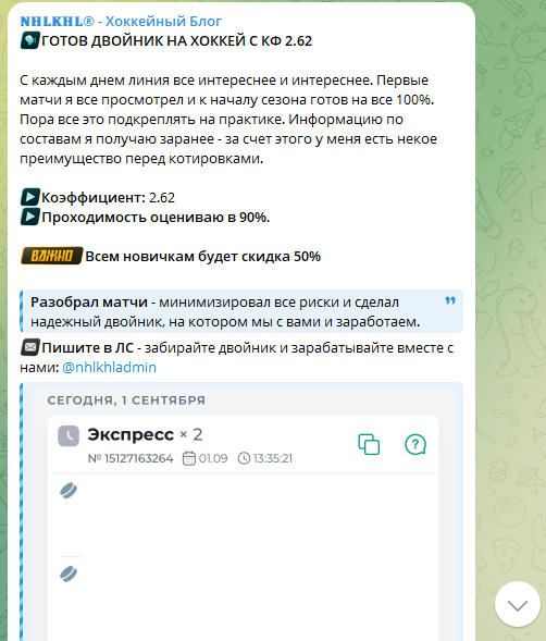 𝐍𝐇𝐋𝐊𝐇𝐋 сосредоточен на собственных знаниях в области спорта и не занимается продвижением других сообществ. Он не агитирует за регистрацию у букмекеров и не использует партнерские ссылки. Это означает, что автор не имеет интереса к небольшому проценту выигрышей, так как букмекерские конторы выплачивают 90% своих доходов только с проигрышей новопривлеченных клиентов.